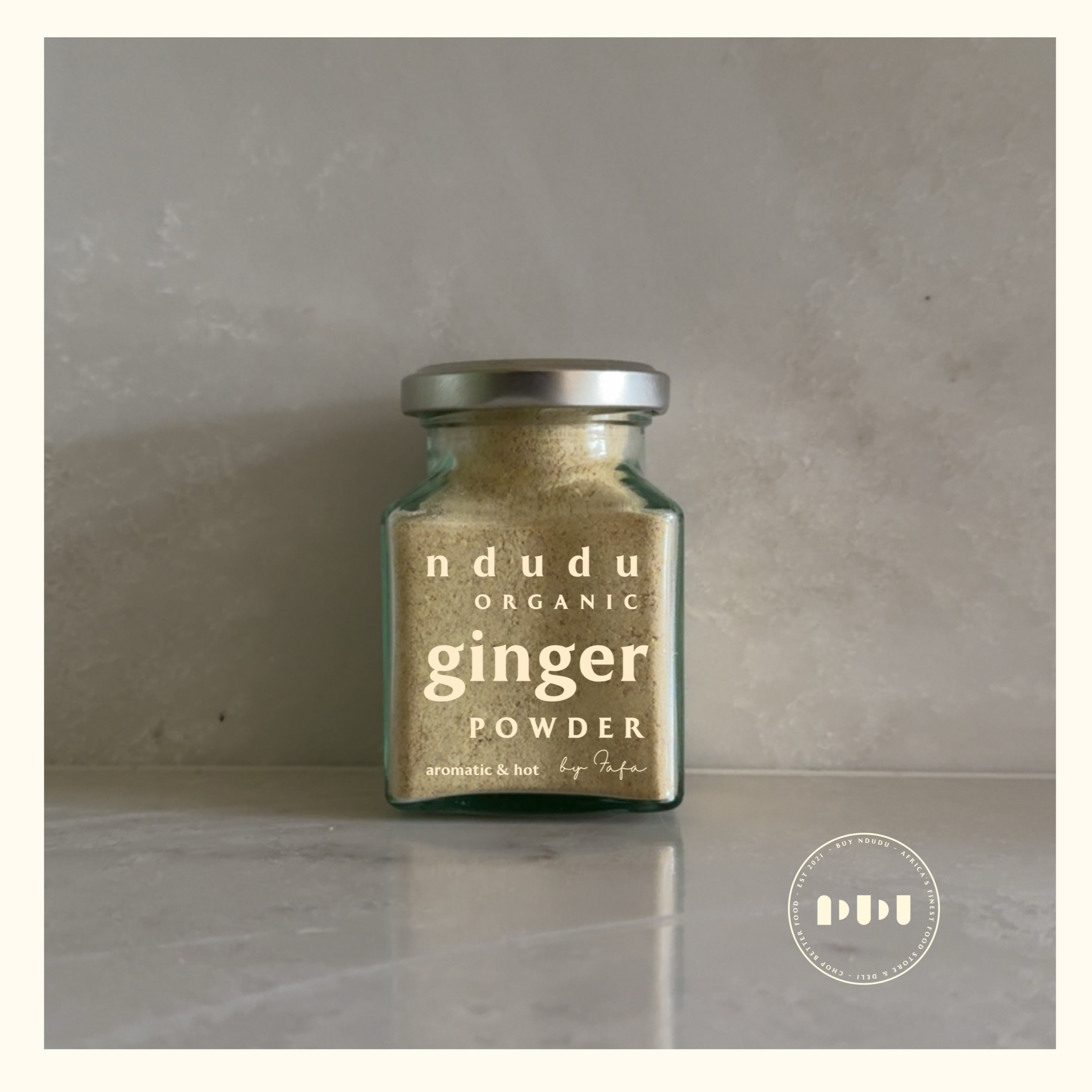Our single sourced Organic Ginger powder (made from scratch by our in house Chef Fafa) has an intense aromatic Ginger flavour and aroma.
