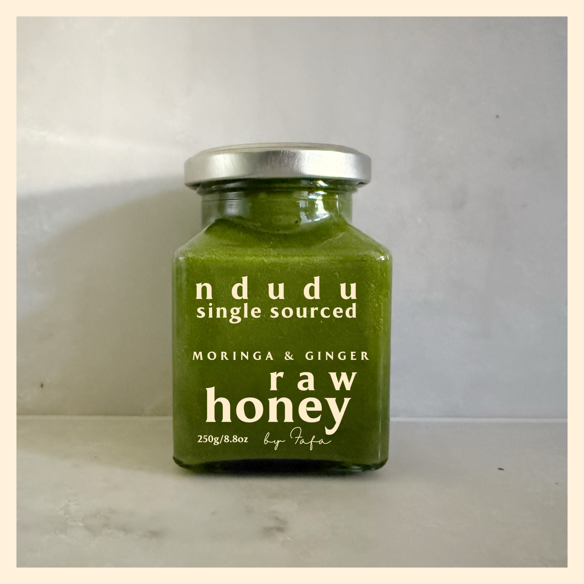 This single sourced raw honey has been expertly infused with organic Ginger and Moringa powder by our in-house Chef Fafa.
